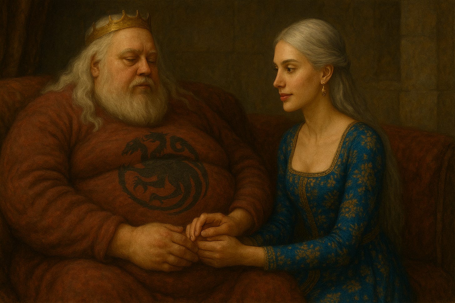 TL;DR - Aegon IV wasn’t the fat joke villain Maesters caricatured him as. He was a solipsistic performance artist who turned his own deep-seated trauma into theater, deliberately curating his reputation as “Unworthy” so as to transmute private shame into public myth. In doing so, he not only catalyzed the Blackfyre century but also exposed the hypocrisy of legitimacy, honor, and Andal piety. His reign was less a reign than a baroque act of narrative revenge.