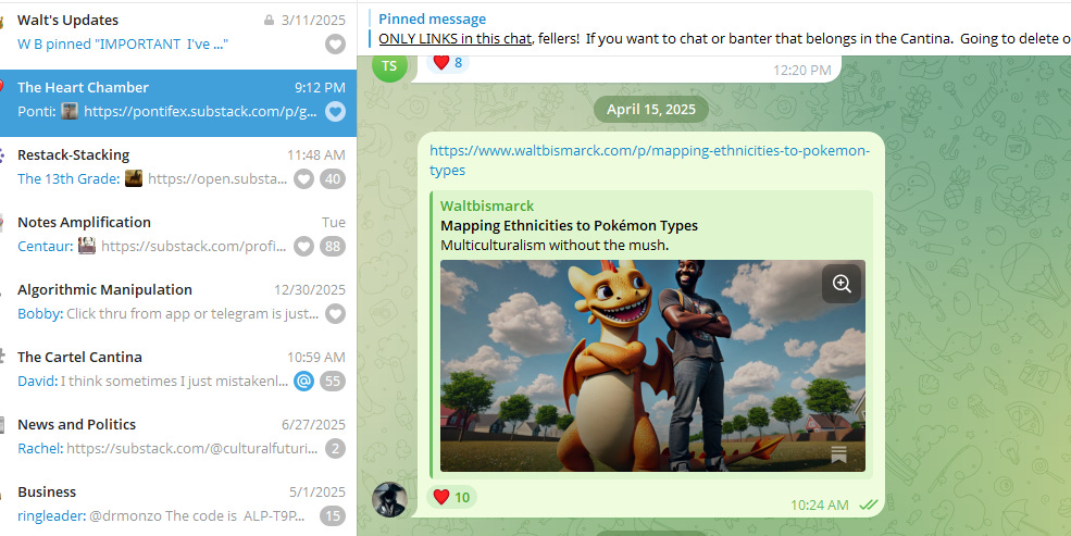 tl;dr is last February it occurred to me that autistic racists are pretty terrible at liking each other’s posts on substack dot com—particularly when compared to the assorted Zoomer art heaux on the periphery of our circle, who on account of their longstanding Tumblr muscle memory / kawaii relational phenomenology are able to do so without experiencing the slightest cognitive load, and as such periodically rack up three or four times as many likes as sperg accounts with an order of magnitude more subs.