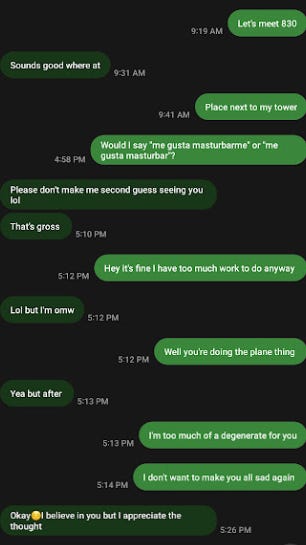 It should—because you really couldn’t have designed a more perfectly demonstrative failure mode here given that A) chiquita pretty clearly had a crush on me, and made that incredibly obvious to a degree I at that point hadn’t experienced probably since I was her age thanks to having myself been doogie howser jailbait for the better part of undergrad; and far more worryingly B) on maybe our third or fourth session her illegal immigrant mom randomly absconded from the trailer (far and away less homey than the Cervantes-mobile), trusting I guess an adult male stranger to (in flagrant violation, btw, of the compact she’d signed) babysit her preteen daughter behind closed doors literally just the two of us whilst moms fucks off to be a hooker or something.