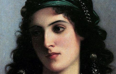 This, of course, is the famous Belle Juive (“Beautiful Jewess”) archetype. It dates to the nineteenth century—likely a direct result of Napoleon opening the ghettos—but may have some continuity with the medieval era. I imagine Rebecca of York, for instance, was mostly a philosemitic Victorianism, but perhaps she was based on a saintly and idealized version of some archetype in the cultural canon of a suffering canny Jewess?